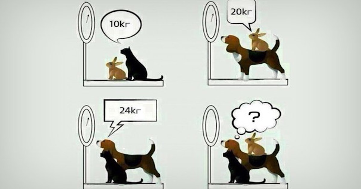 Умова: Заєць з котом разом мають вагу 10 кг. Собака з зайцем – 20 кг. Собака з котом – 24 кг. А скільки в цьому випадку будуть важити усі тварини разом: заєць, кіт і собака?