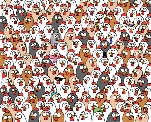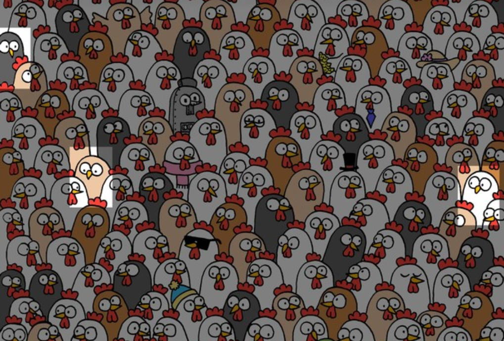 Спробуйте якомога швидше знайти на картинці трьох сов, які сховалися серед курочок.