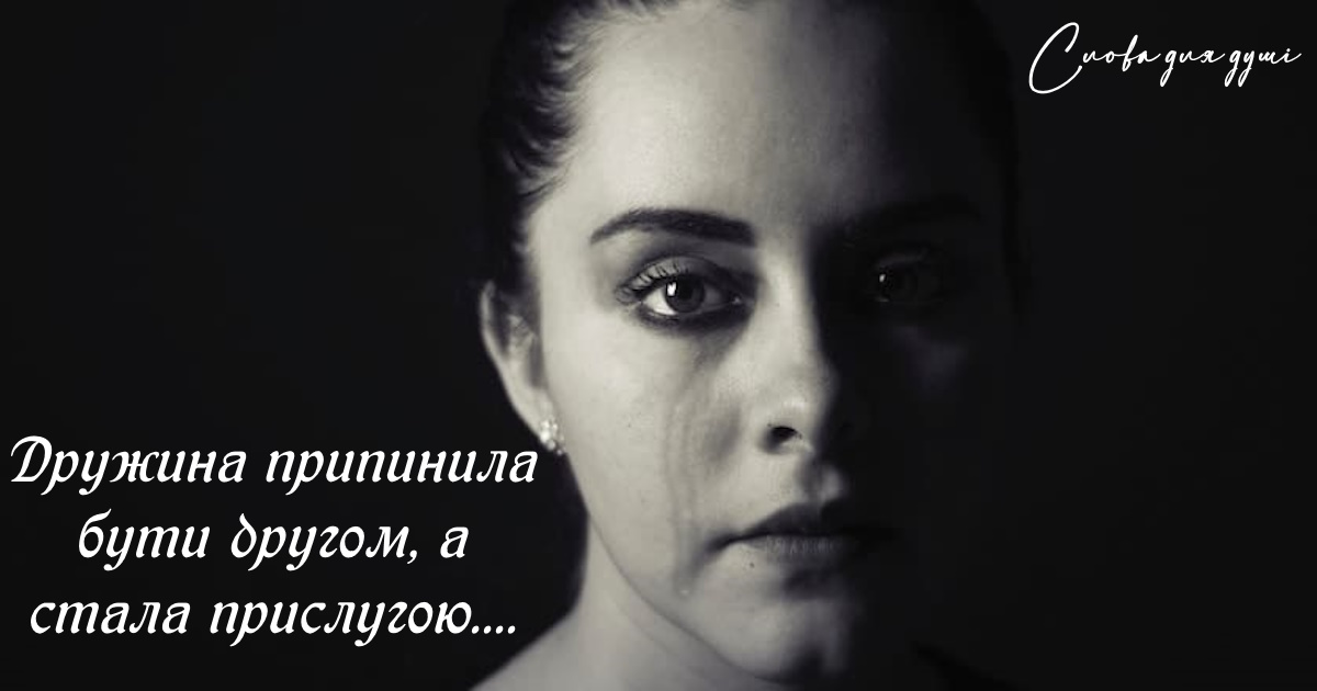 Дружина припинила бути другом, стала прислугою. Істотою нижчого рангу, як колись казали. І чоловік сам себе прирік на самотність, принизивши найближчу людину. Адже вірного друга у нього не стало, людини, з якою можна поділитися потаємним, людини, яка на рівних може дати підтримку, пораду, захистити, посперечатися, переконати, змусити відмовитися від невірного кроку… Був друг — став раб. Був товариш — стала домашня тварина. І в таких стосунках людина забирає в себе найголовніше — підтримку. Тому що той, кого не поважають, така собі підтримка. Просто вірний раб, а не друг.
