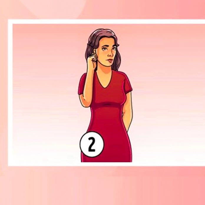 Положення її тіла вказує на те, що вона занадто підозріла. Вона нервово пощипує вухо. Це може означати, що вона хоче вас обдурити або, принаймні, постаратися не говорити правду повністю.