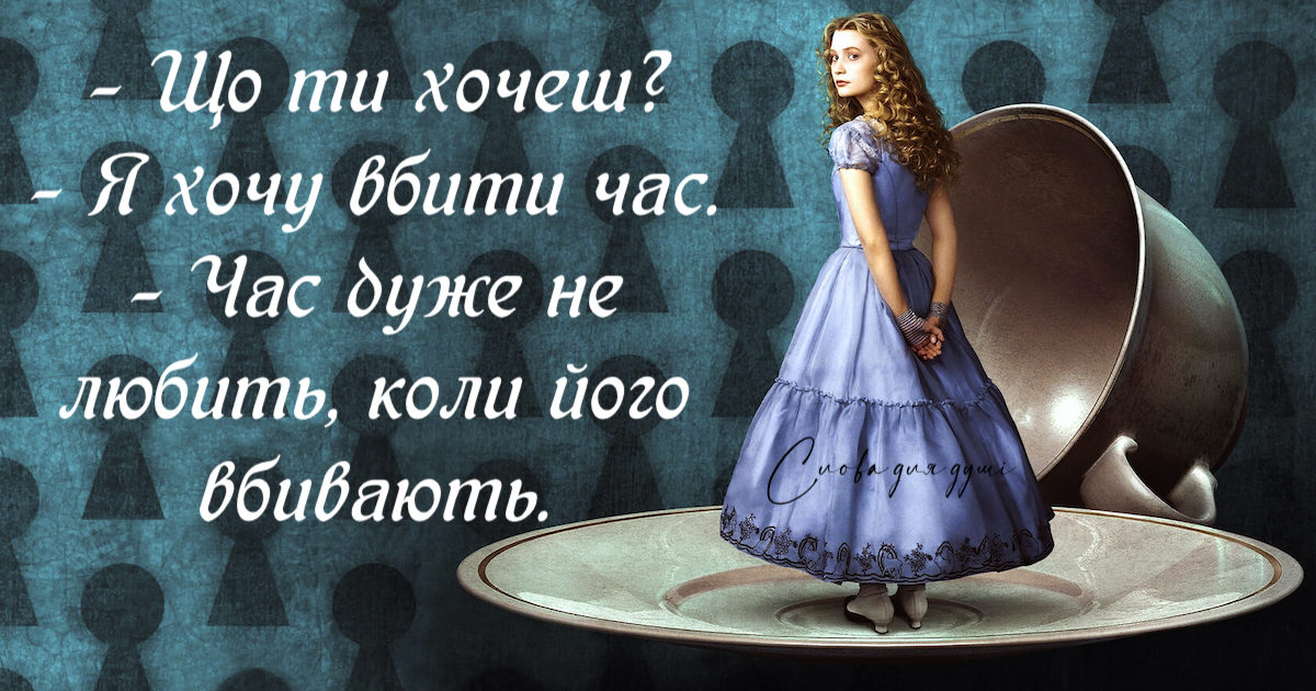 – Просто у тебе мало досвіду, – зауважила Королева. – У твоєму віці я приділяла цьому півгодини щодня! В інші дні я встигала повірити в десяток неможливостей до сніданку!