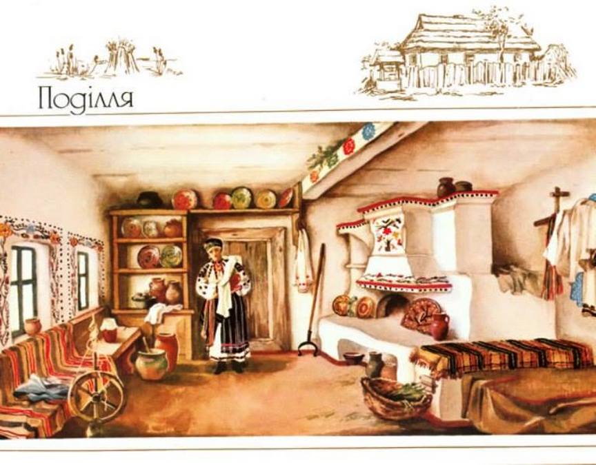 На Поділлі (Вінницька і Хмельницька області) частини хати мали таке ж розташування, як і в більшості регіонів Україні – піч з боку від входу, навпроти мисник, під вікнами лава.