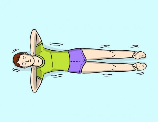 Далі накладіть долоні одну на одну, зігніть руки в ліктях і покладіть їх під 3-й і 4-й шийні хребці, зведіть ноги разом, а стопи злегка розведіть в боки. Рухайте стопи вліво і вправо так, щоб все тіло вібрувало. Виконуйте вправи протягом 2-х хвилин.