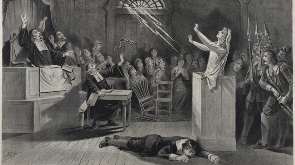Візьмемо випадок Рейчел Клінтон: «Поважні та відомі жінки звинуватили її у тому, що вона вдарила їх ліктем», коли проходила повз них у церкві. Рейчел, сама колишня жінка, яка була «цінною та відомою», мала матір із психічними розладами та пізній шлюб, через що опустилася на нижню сходинку класової системи. Додайте до цього тицяючих пальцями жіночок, які кричать, що їх ударили ліктем, та іншу нашаровану на це маячню, і Ребекку засуджено за чаклунство.