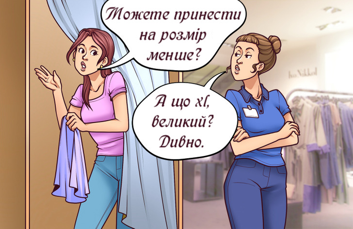 Озвучувати коментарі про фігуру іншої людини просто непристойно. Особливо коли йдеться про консультанта, який взагалі-то повинен бути ввічливий з покупцем.
