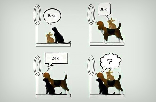 Умова: Заєць з котом разом мають вагу 10 кг. Собака з зайцем – 20 кг. Собака з котом – 24 кг. А скільки в цьому випадку будуть важити усі тварини разом: заєць, кіт і собака?