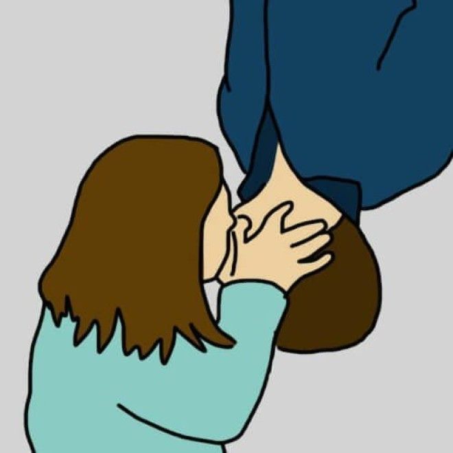 Цей спонтанний вид поцілунку, коли особи розташовані «валетом», означає, що у ваших стосунках є місце здивуванню і сюрпризам.