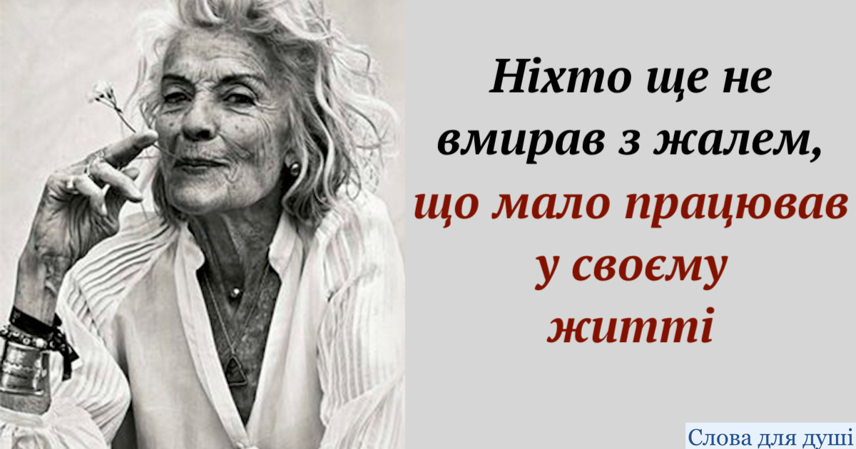 - Ніхто ще не вмирав з жалем, що мало працював у своєму житті. Будьте працелюбні, але не ставте роботу вище сім’ї, друзів і, врешті-решт, себе самого!