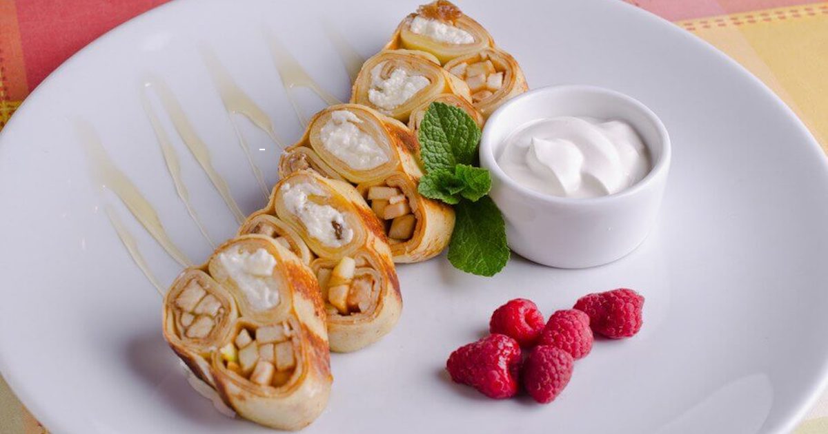 Склад: рідке згущене молоко або варене згущене молоко. Солодкі млинці можуть бути политі зверху згущеним молоком.