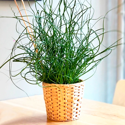 Ситник розлогий (Juncus effusus). Схоже, що хтось просто вирішив зробити квілінг із звичайного ситника. Примітно, що батьком цієї унікальної кімнатної рослини стала звичайна польова трава. Тому рослина невибаглива і легко поширюється.
