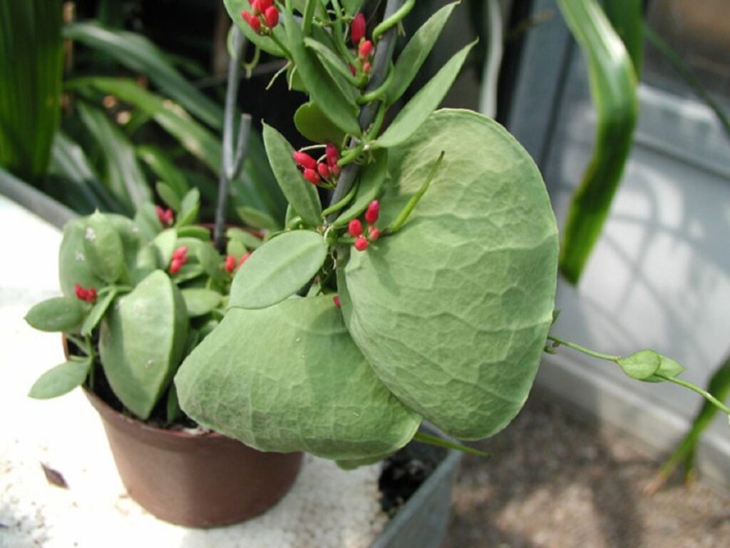 Дісхідія раффлеза (Dischidia rafflesiana) – ще одна досить дивна і не дуже відома рослина. Її відносять до сімейства рослин, що плетуться. Дісхідія раффлеза нагадує досить велику ліану, довжина якої може досягати 5-ти метрів. На першому рівні листя у рослини велике, м’ясисте і товсте. Інше листя має мішковидну форму (його можна переплутати з плодами). У них накопичується дощова вода. Цвіте рослина маленькими м’ясистими квітками, котрі збираються в суцвіття.