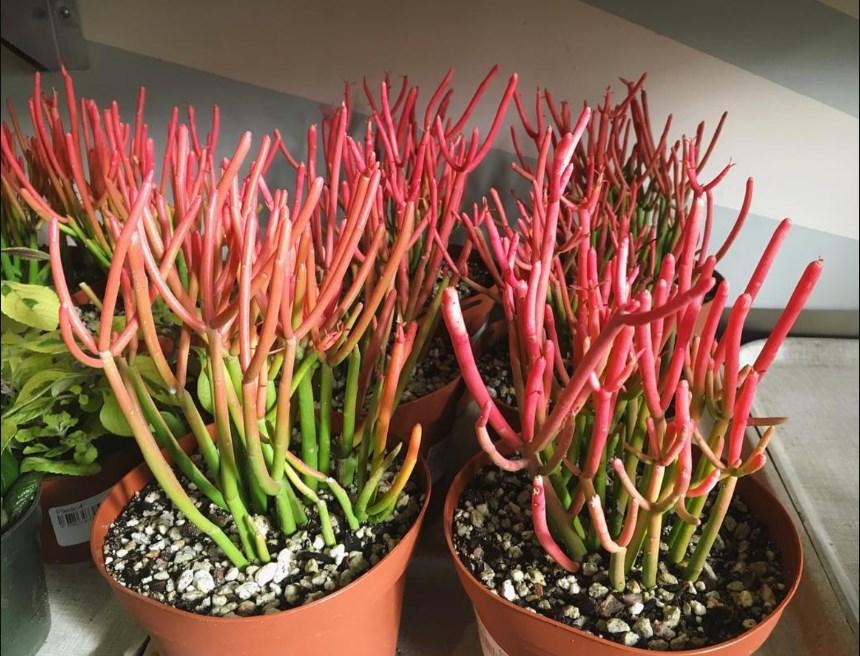 Молочай тірукаллі (Euphorbia tirucalli). З соку цієї рослини раніше добували каучук! Сік молочаю — чиста отрута, але як же він чарівно красивий… «Вогняні палички» — одна з назв.