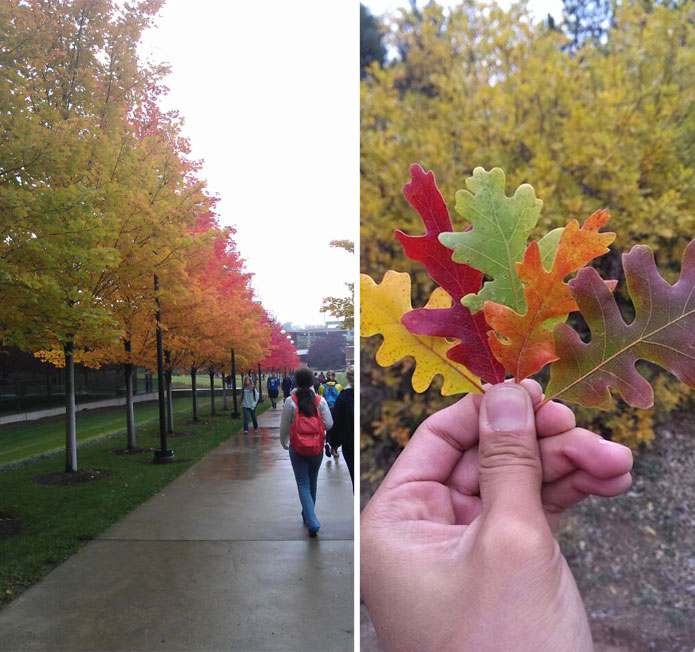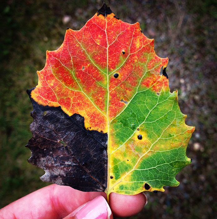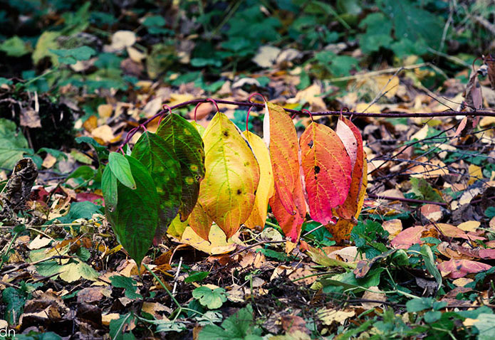 Осінь дарує безліч фарб, але вони рідко зустрічаються разом у безпосередній близькості. Погодьтеся, це справжнє диво природи, коли частина дерева забарвлена зеленими тонами, частина жовтими, частина червоними – з усіма проміжними градієнтами. Ще більш дивно, якщо всі ці кольори зустрічаються поряд на одній гілочці, і зовсім неймовірно, якщо на одному листочку.