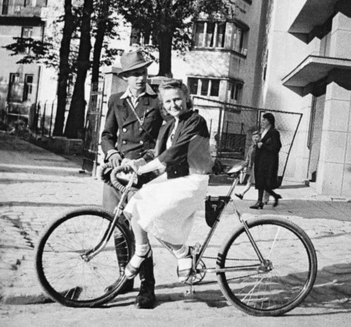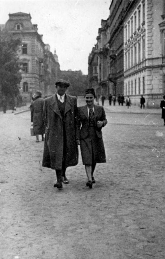 На старих фото рідко можна побачити закохану пару, котра обіймається чи цілується, оскільки це було поза нормами тодішньої моралі. Натомість досить багато світлин, де закохані прогулються разом по вулицях Львова. Фото 30-х рр. XX ст.