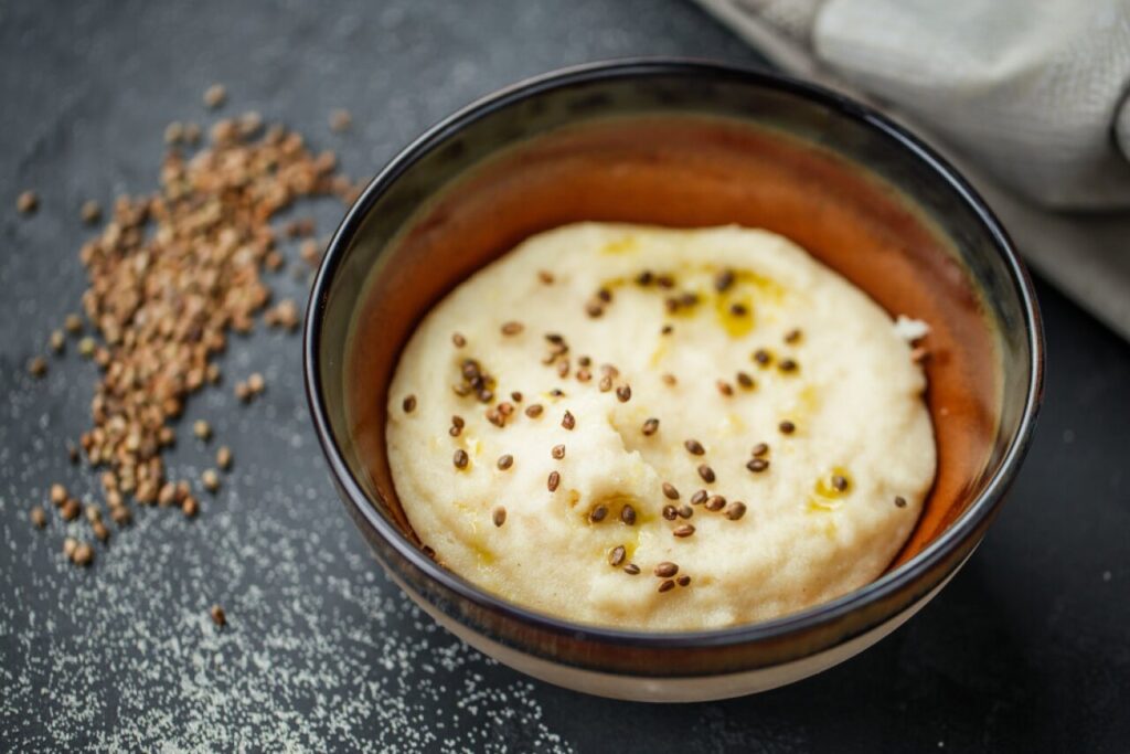 Подавайте тетерю з натертим пармезаном та гречаними пластівцями.