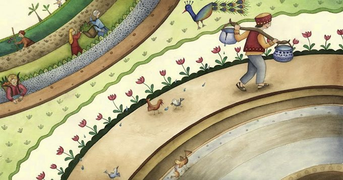 «Все це завдяки тобі, маленький глечик. Я спеціально ніс тебе на лівому плечі, щоб ти міг поливати насіння квітів, які я посадив кілька років тому. Я приношу ці прекрасні квіти своєму господареві і роблю його щасливим. Ти стільки доброго зробив для мене і для нас усіх, просто існуючи. Тому повинен пишатися собою, наш чудовий глечик», – відповів слуга.