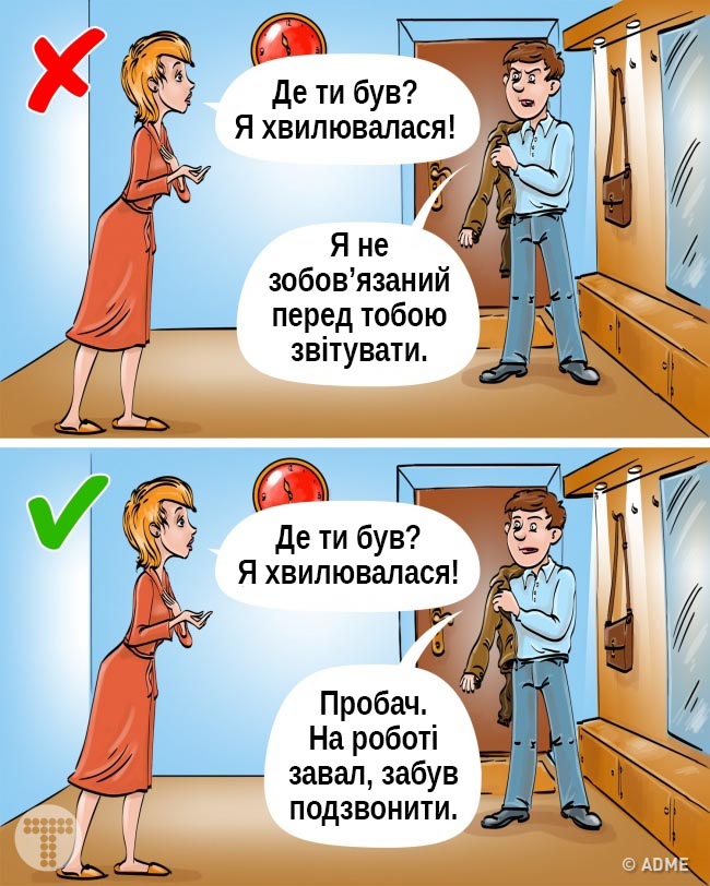 Звичайно, ваш партнер не на допиті і справді може не звітувати за кожен дрібний крок. Але розповісти, як пройшов день або поділитися проблемою, яка хвилює, — це не звіт. Це звичайні людські потреби. І, якщо він не хоче цього робити, ймовірно, йому все одно, що ви думаєте.