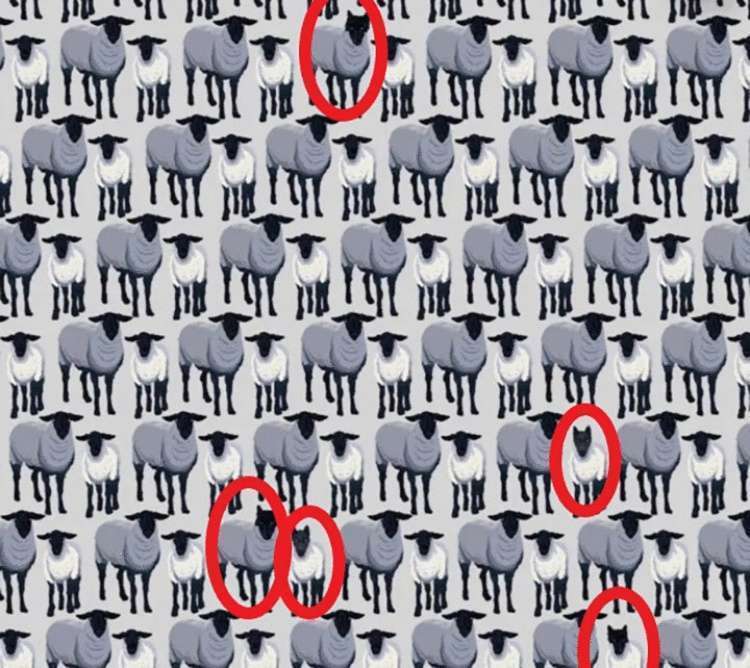 Отже, подивіться зображення ще раз і спочатку знайдіть хоча б одного вовка серед овець, а потім постарайтеся порахувати, скільки їх всього на картинці.