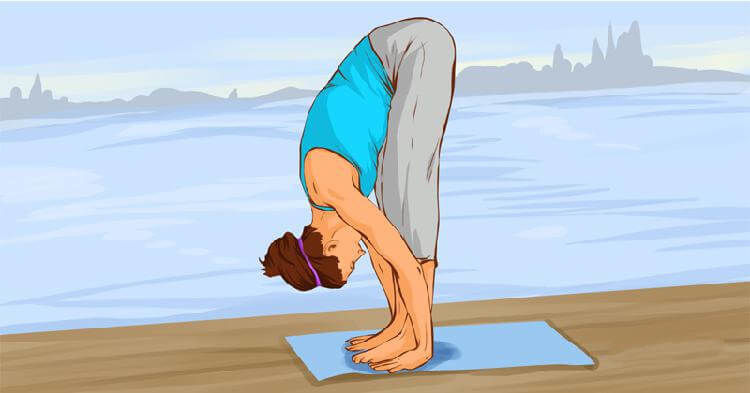 Встаньте прямо і покладіть руки на стегна. Вдихніть, потім на видиху нахиліться вперед, складаючись навпіл в тазостегнових суглобах і розслабляючи спину. Опустіть руки на підлогу, хто не дістає до підлоги, можете обхопити ними гомілки або спертися долонями про спеціальну підставку. Перебувайте в асані на затримці дихання після видиху, потім з повним вдихом розслабтеся і повільно випросталась в початкове положення.