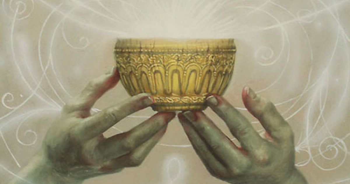 Хлопець наповнив її тремтячими руками і сів, чекаючи. Мудрець підняв чашу і виявилось, що в ній є тріщина, з якої на підлогу закапало вино.