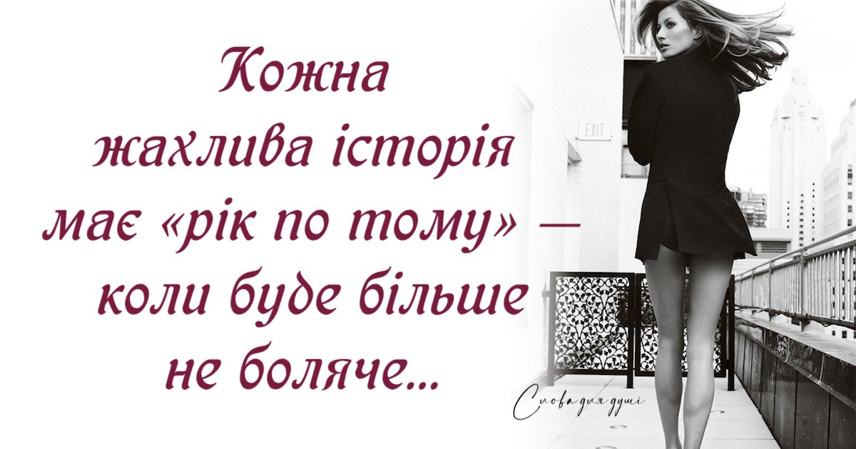 І навіть у найгірші моменти не забувайте, що це минеться. І що кожна жахлива історія має «рік по тому» — коли буде більше не боляче. І коли можливо у вашому житті з’явиться інша людина, і ви знову будете щасливі.