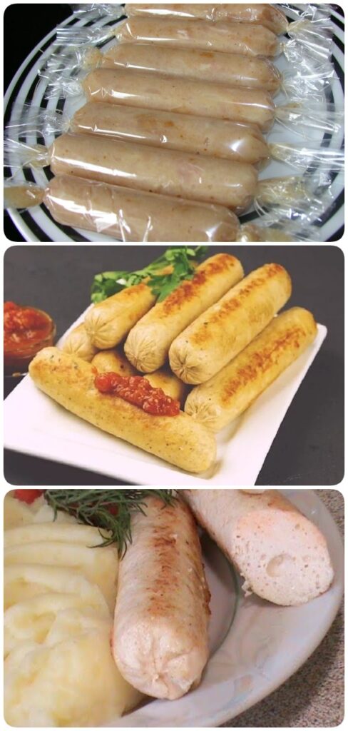 5. Намагайтеся щільно згортати сосиски, щоб максимально прибрати повітря, тоді вироби вийдуть рівними і красивими. Зав’яжіть нитками краї.