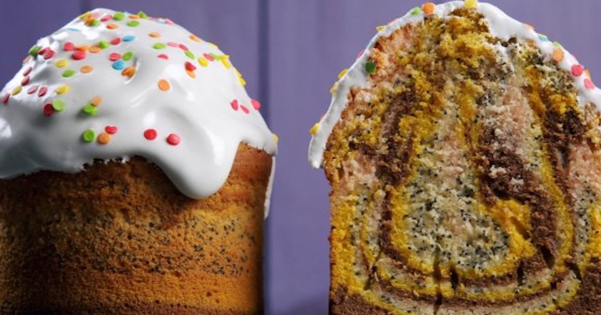 Оригінальна пасхальна паска різнокольорова всередині і з вкрапленнями маку – ефектна і дуже гарна випічка на Великдень.