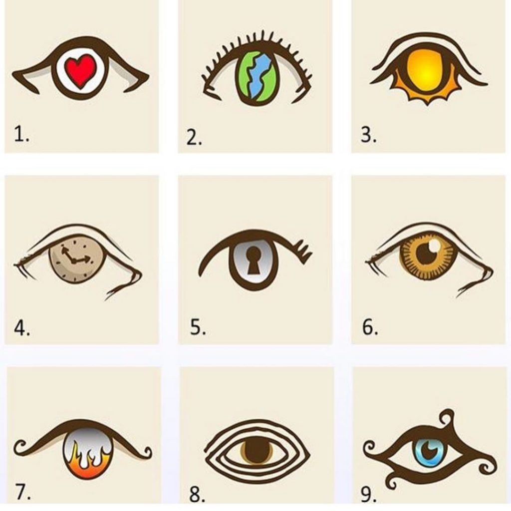 Пробіжіть очима по зображеннях, зверху вниз, потім знизу вгору. І ґрунтуючись на першому враженні, виберіть око, яке вам найбільше подобається, і друге — що викликає неприємні відчуття. Запам’ятайте їх номери та прочитайте нижче тлумачення.