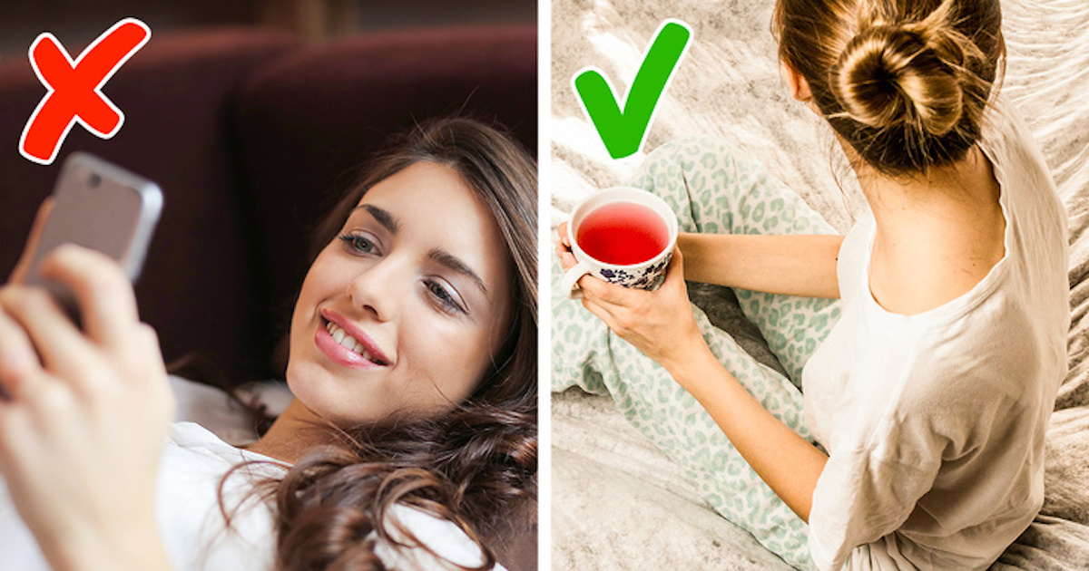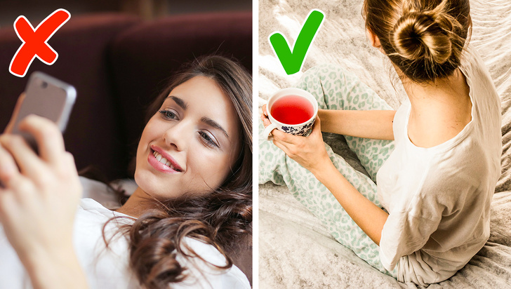 Відмовтеся від «п’ятихвилинного» ранкового гортання стрічки новин: це не найкращий початок дня. Присвятіть цей час чомусь більш корисному і приємному: складіть список справ, пограйте з домашнім улюбленцем, почитайте книгу або просто дозвольте собі поніжитися у ліжку зайвих 10 хвилин.