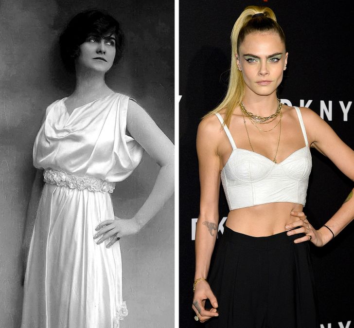 Модельєр Коко Шанель та модель Кара Делевінь у 27 років