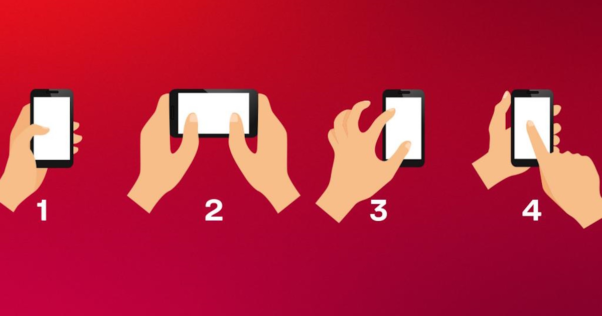 Оберіть одну картинку з чотирьох, яка відповідає вашому положенню рук, коли тримаєте телефон та читайте результат.