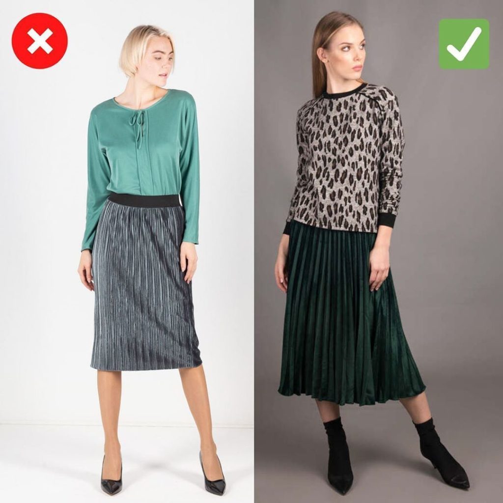 Спідниця-плісе. Вибираємо довжину міді та щільну тканину. Зверніть увагу на модель з широкою чорною гумкою на поясі — вона зіграє з вами злий жарт.