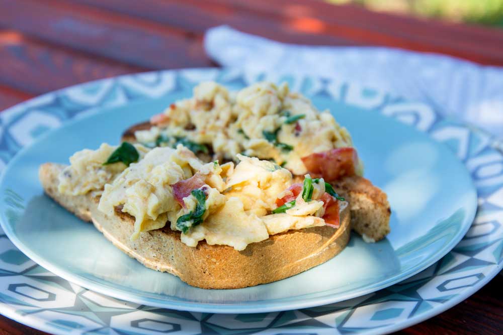 Скрамбл з томатами на тості
