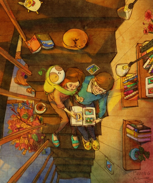 Художник Puuung малює дуже милі і теплі ілюстрації, в яких втілює прості, але дуже важливі моменти любові в повсякденному житті. Вони нагадують нам, що наше ставлення один до одного кожен день набагато важливіше будь-яких широких жестів. Будь ласка, не забувайте про прості речі … Після таких картин ще раз переконатися в цьому, що любов живе в дрібницях.