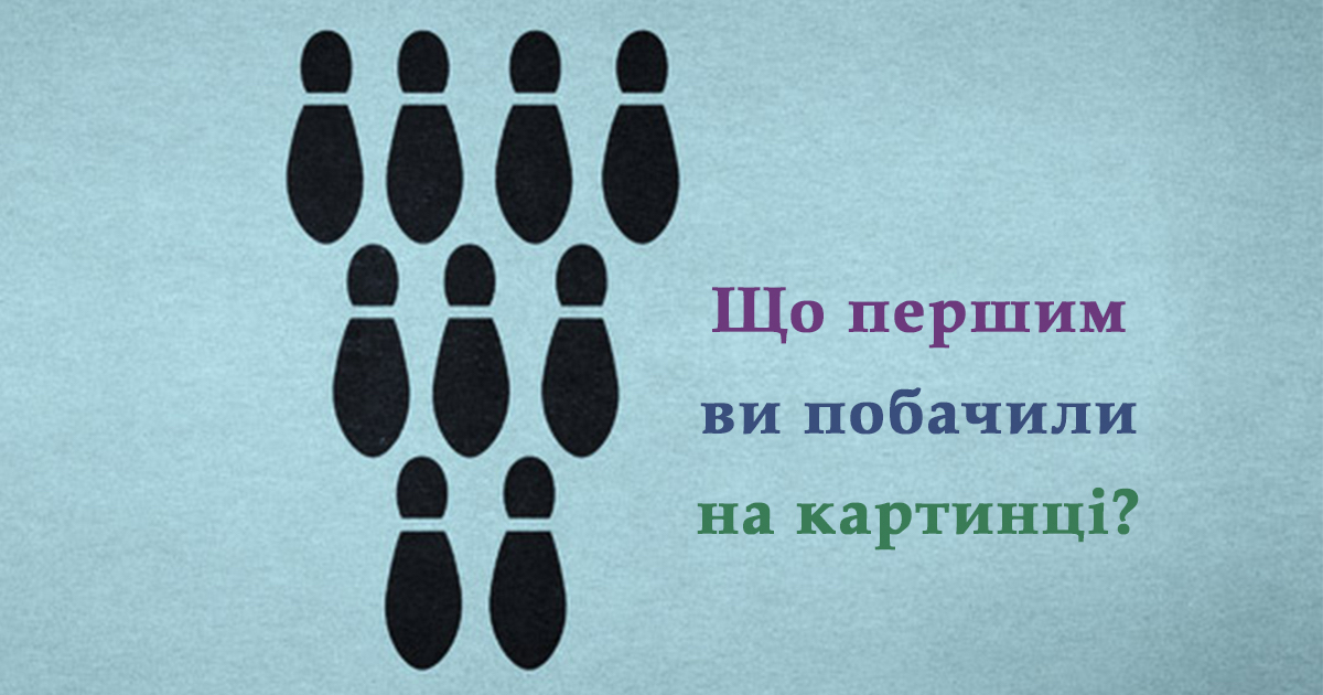 Що першим ви побачили на цій картинці: кеглі, сліди, матрьошки?