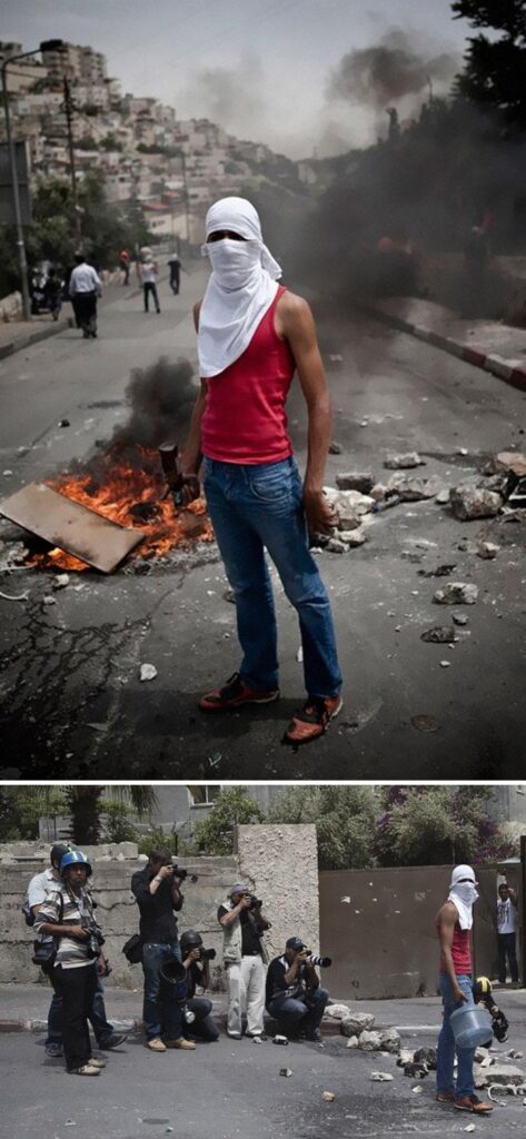 Фотограф Рубен Сальвадорі робив репортаж про палестино-ізраїльському конфлікті. Цей знімок з молодим палестинцем – постановка.