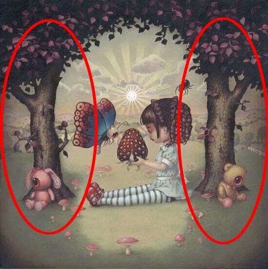 Череп, не відкрито присутній на цій картинці, але всі інші елементи утворюють оптичну ілюзію.