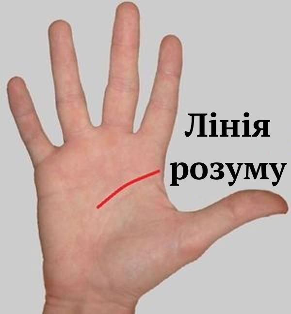 Проаналізуємо лінію розуму, яка читається від внутрішнього краю долоні до зовнішнього, а знаходиться одразу під лінією серця.