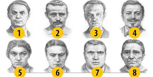 Подивіться на портрети цих 8 людей і виберіть ту людину, яку б ви ні за що не хотіли зустріти ввечері в темному провулку, оскільки його зовнішність викликає огиду або лякає. Тепер можете дізнатися характеристики до вибраного портрету.