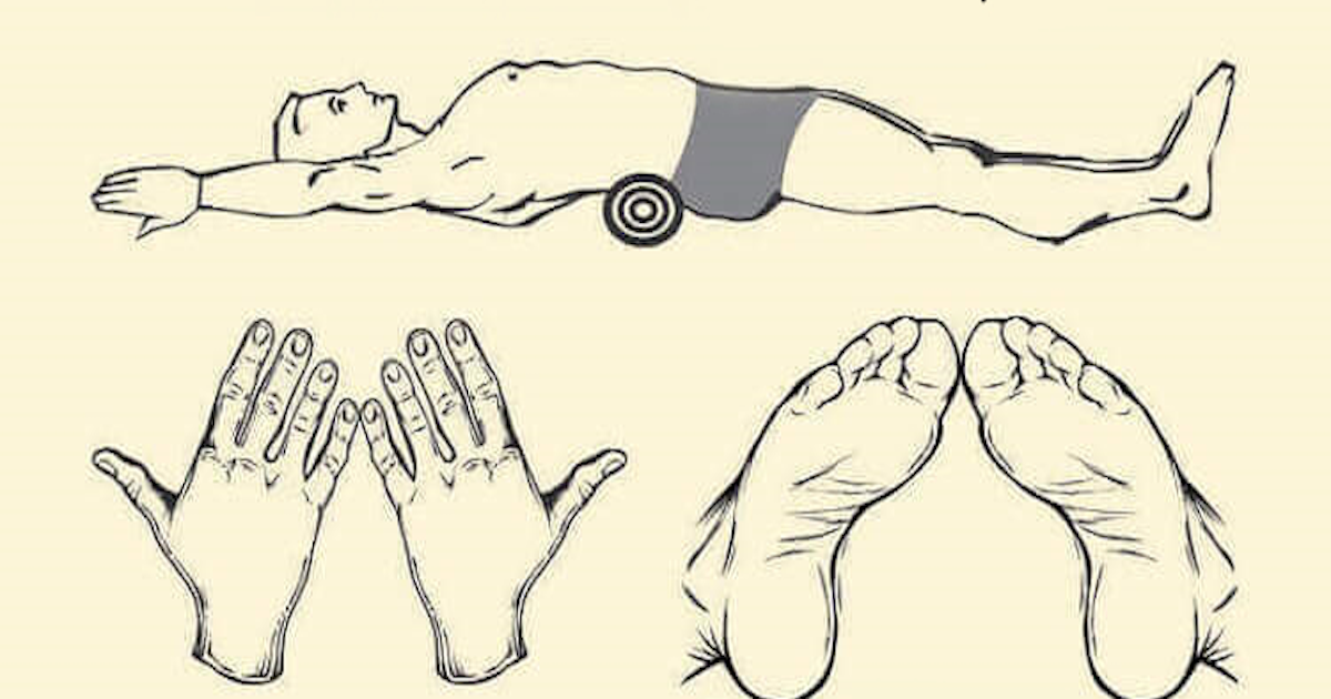 Акуратно опустіться на спину, притримуючи валик руками так, щоб він виявився точно поперек тіла під попереком – рівно під пупком. Це важливий момент.