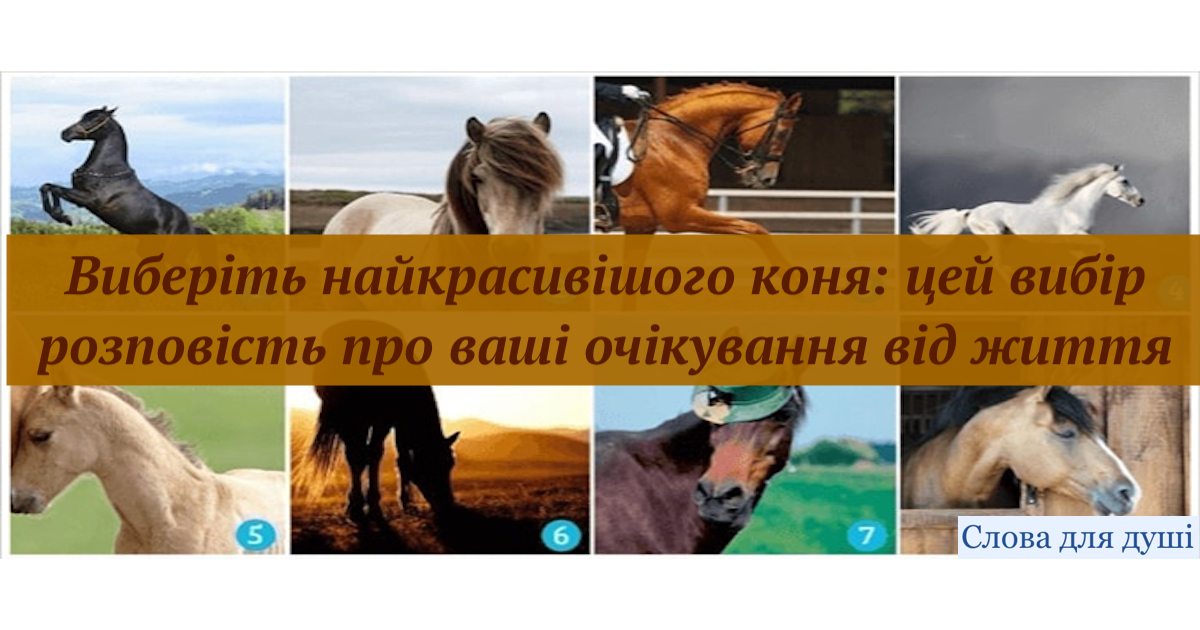 - Якщо ви вибрали дикого коня на тлі красивого пейзажу, значить ви перебуваєте в пошуку миру, спокою і комфорту, але бачите перед собою якусь перешкоду. Ви точно знаєте, чого хочете, але розумієте, що без зусиль цього не досягти.