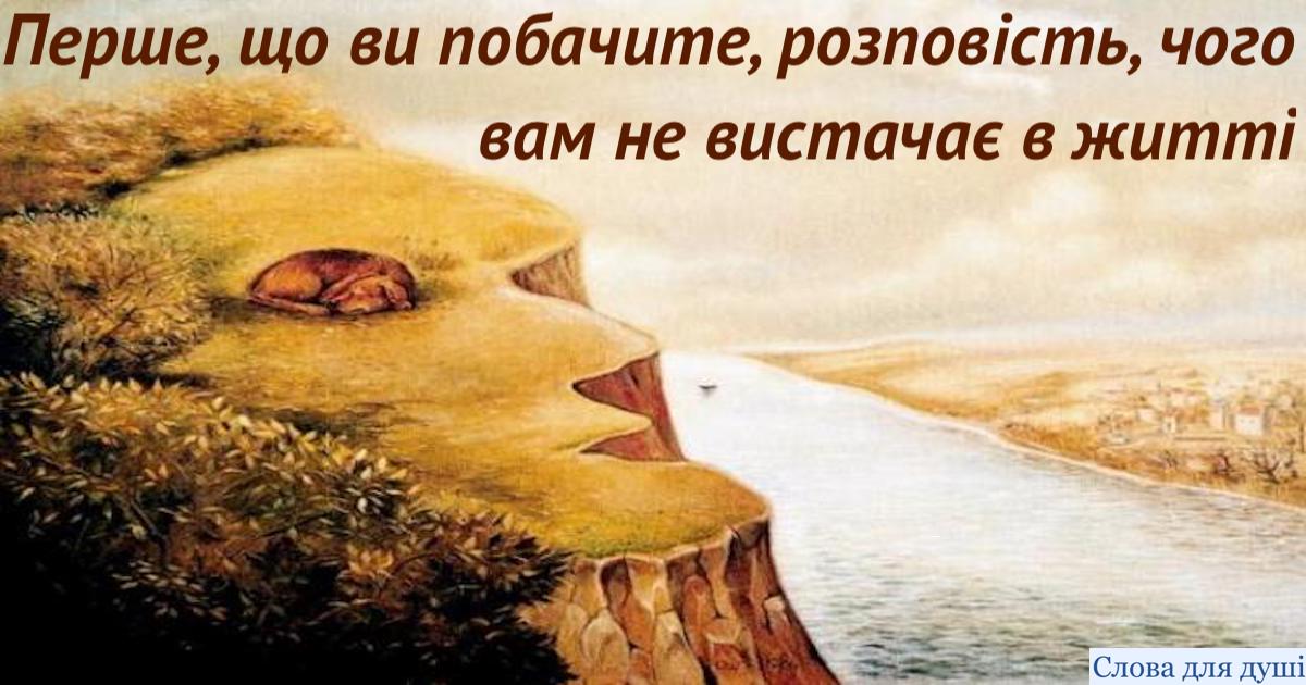 Психологічні тести допомагають нам зануритися в себе та знайти відповіді, які ховаються далеко в нашій підсвідомості. Вам необхідно просто подивитися на картинку та усвідомити, що ви побачили у першу чергу. Далі просто прочитайте розшифрування та дізнайтеся чого вам дійсно не вистачає у цьому житті.