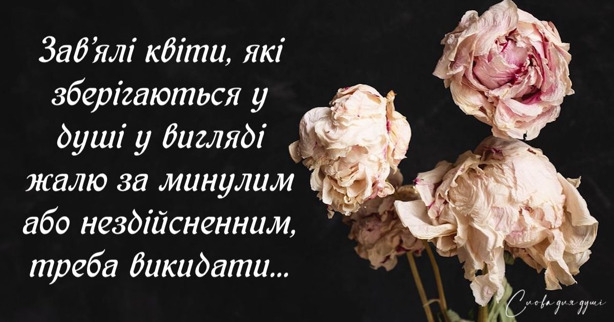 - Зів’ялі квіти, які зберігаються в душі у вигляді жалю за минулим або нездійсненним, треба викидати.