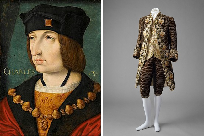 Багато розшиті довгі камзоли були вперше виготовлені за наказом Карла, і, звичайно, придворні не могли не підхопити нове віяння. Під час правління короля змінювалися нюанси вишивки та прикраси цього предмета гардероба, але от довжина повинна була залишатися незмінною.