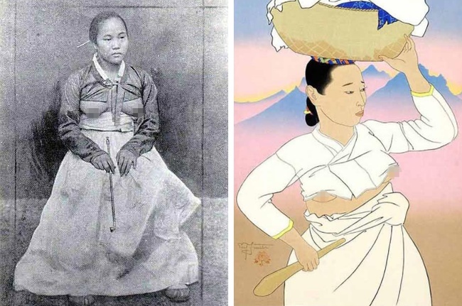 З XVII до початку XX століття в Кореї панувала незвичайна жіноча мода. Звичайно, не всі жінки носили специфічні костюми з відкритими грудьми, які були частиною національного одягу.