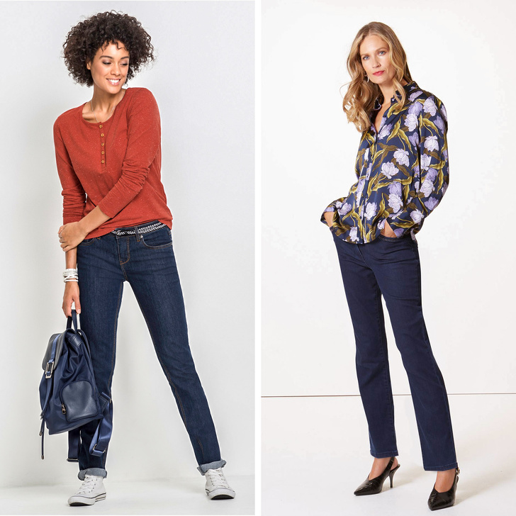 Мода на джинси змінюється практично щороку: сьогодні в моді «мамині» джинси, а завтра вони втрачають актуальність і на зміну їм приходять скінні. Однак прямі джинси класичного крою з звичайної посадкою (лінія поясу проходить трохи нижче пупка) ніколи не втрачають актуальності. Універсальні джинси повинні бути темно-синього кольору без потертостей та інших «дефектів» і, само собою, не укороченими.