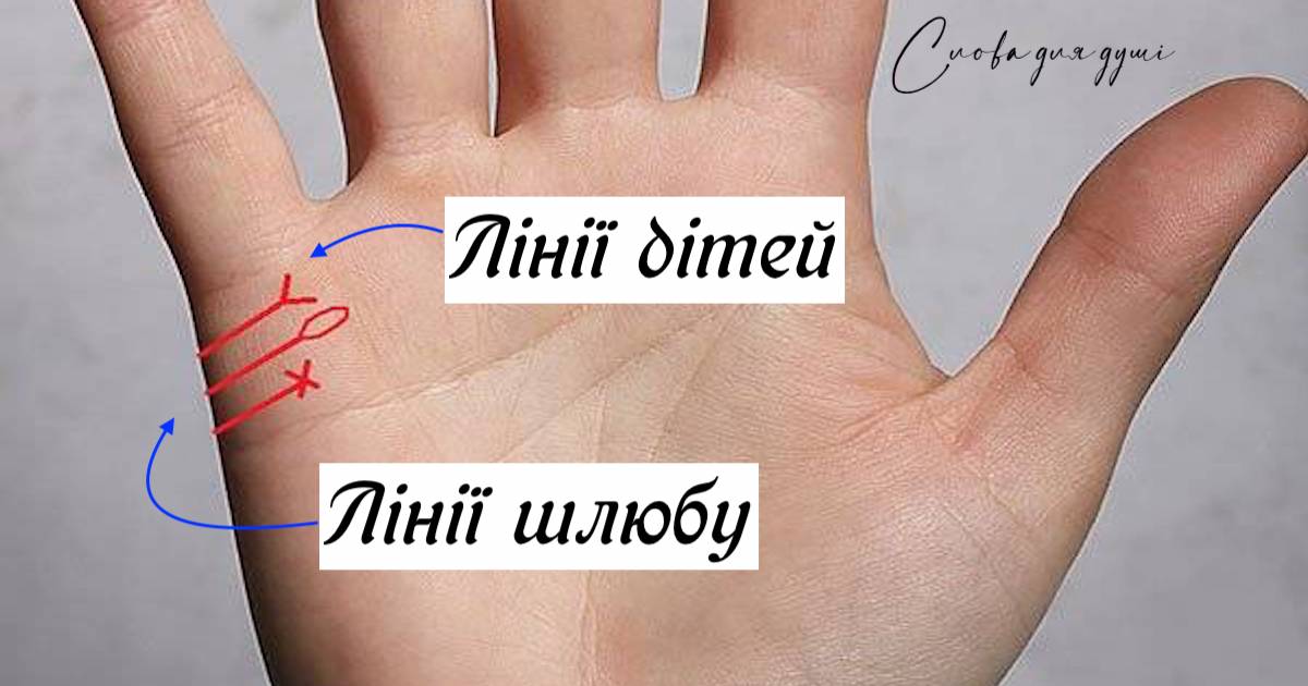 V-образний символ над лінією шлюбу — лінія дітей, яка пророкує появу близнюків.