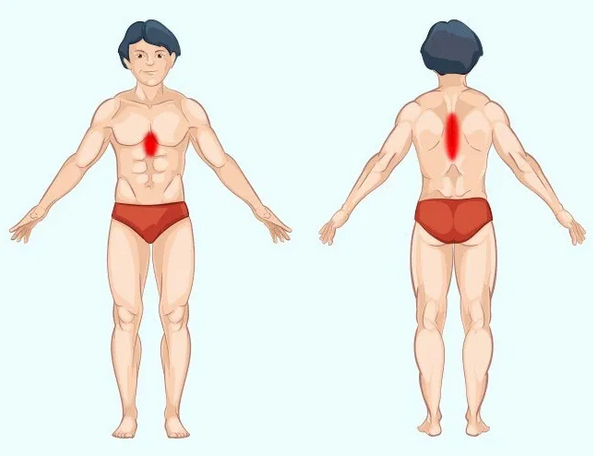 При проблемах зі шлунком болить середня область живота, нижче ребер. Біль також може виникати в спині, на тому ж рівні.