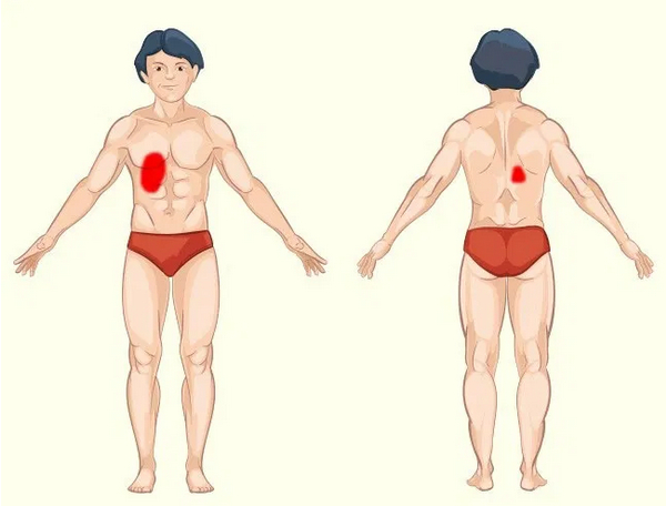 Біль, також, може виникати на тому ж рівні в спині. Проблеми з печінкою можуть проявлятися через різні симптоми, від гіркоти в роті до жовтяниці.