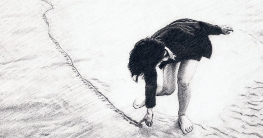 Останнє завдання. На фото ви бачите дівчинку, яка стоїть у воді та приклала долоні до вуст. Однак, на цій світлині художник “заховав” обличчя молодої дівчини.
